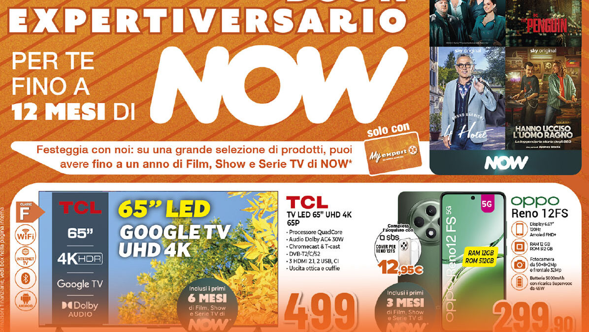 * Messaggio pubblicitario con finalit promozionale. Offerta valida dal 17/10/2024 al 30/10/2024, importo finanziabile da € 200 a € 5.000 – con finanziaria Agos importo minimo finanziabile € 320: paghi in 20 e 30 rate con prima rata a 30 giorni, come da esempi: prezzo del bene € 700, TAN fisso 0% TAEG 0% in 20 rateda € 35. Importo totale del credito e dovuto dal consumatore € 700. Prezzo del bene € 900, fisso 0% TAEG 0% in 30 rate da € 30. Importo totale del credito e dovuto dal consumatore € 900. Spese e costi accessori azzerati. Informazioni (IEBCC/SECCI) presso i punti vendita. Salvo approvazione della finanziaria prescelta, per cui Expert Italy opera quale intermediario del credito NON in esclusiva.