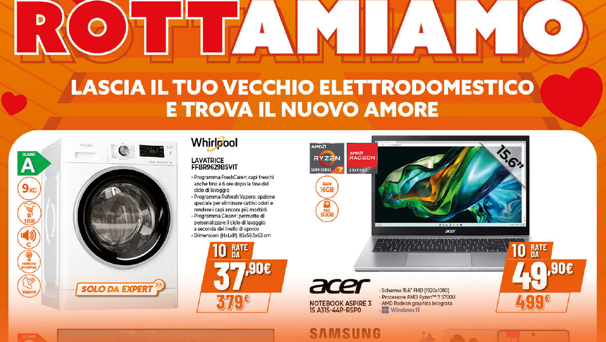 * Messaggio pubblicitario con finalit promozionale. Offerta valida dal 13/02/2025 al 26/02/2025, importo finanziabile da € 200 a € 5.000 – con finanziaria Agos importo minimo finanziabile € 320: paghi in 20 e 30 rate con prima rata a 30 giorni, come da esempi: prezzo del bene € 700, TAN fisso 0% TAEG 0% in 20 rateda € 35. Importo totale del credito e dovuto dal consumatore € 700. Prezzo del bene € 900, fisso 0% TAEG 0% in 30 rate da € 30. Importo totale del credito e dovuto dal consumatore € 900. Spese e costi accessori azzerati. Informazioni (IEBCC/SECCI) presso i punti vendita. Salvo approvazione della finanziaria prescelta, per cui Expert Italy opera quale intermediario del credito NON in esclusiva.