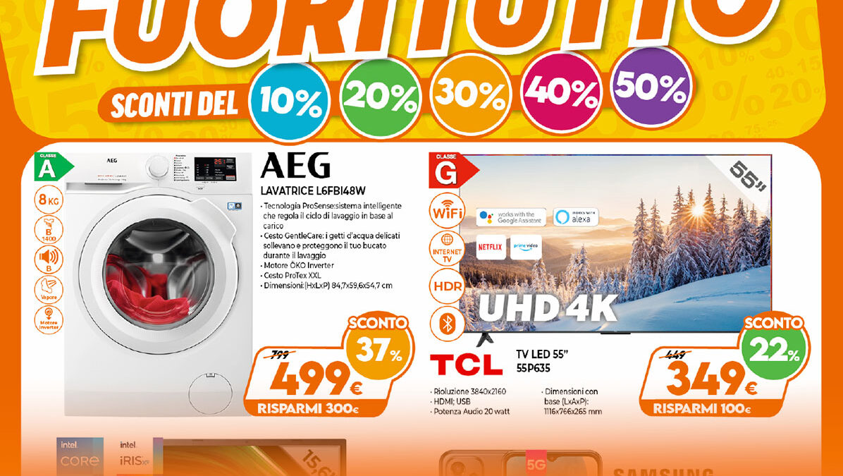 Piccoli e grandi elettrodomestici, televisori 4k, smartphone Android, computer, tablet e molto altro in sconto!