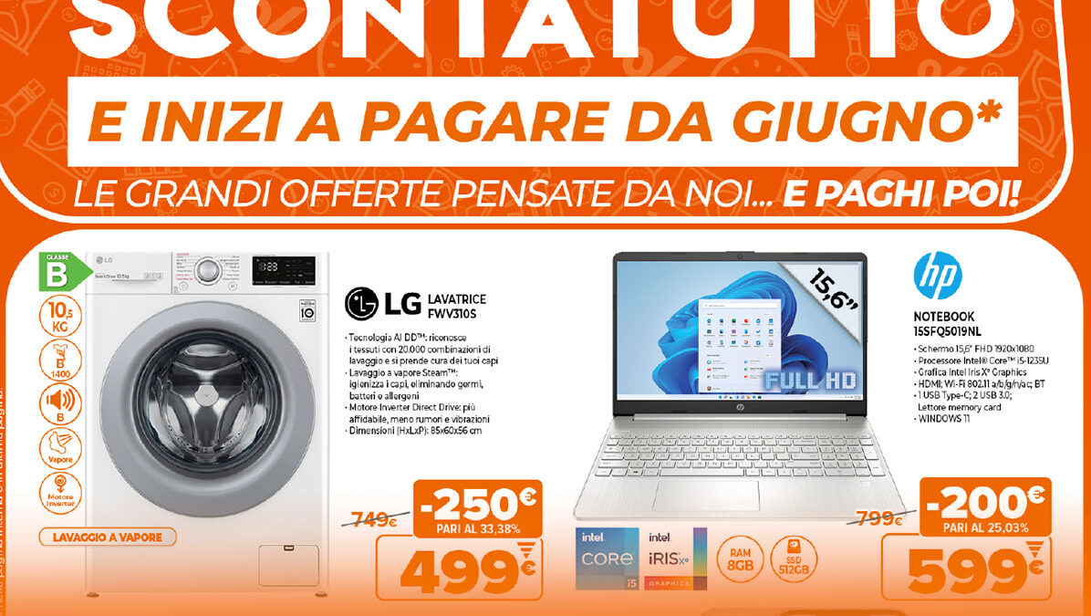 Piccoli e grandi elettrodomestici, televisori 4k, smartphone Android, computer, tablet e molto altro in sconto!