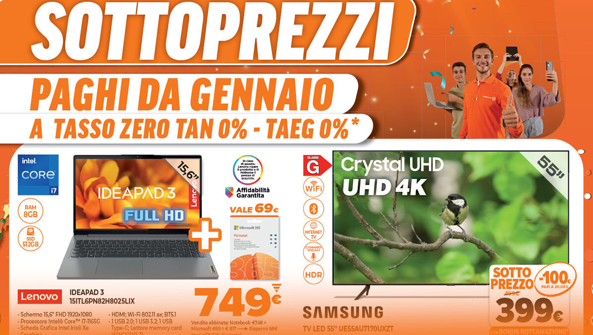 Piccoli e grandi elettrodomestici, televisori 4k, smartphone Android, computer, tablet e molto altro in sconto!